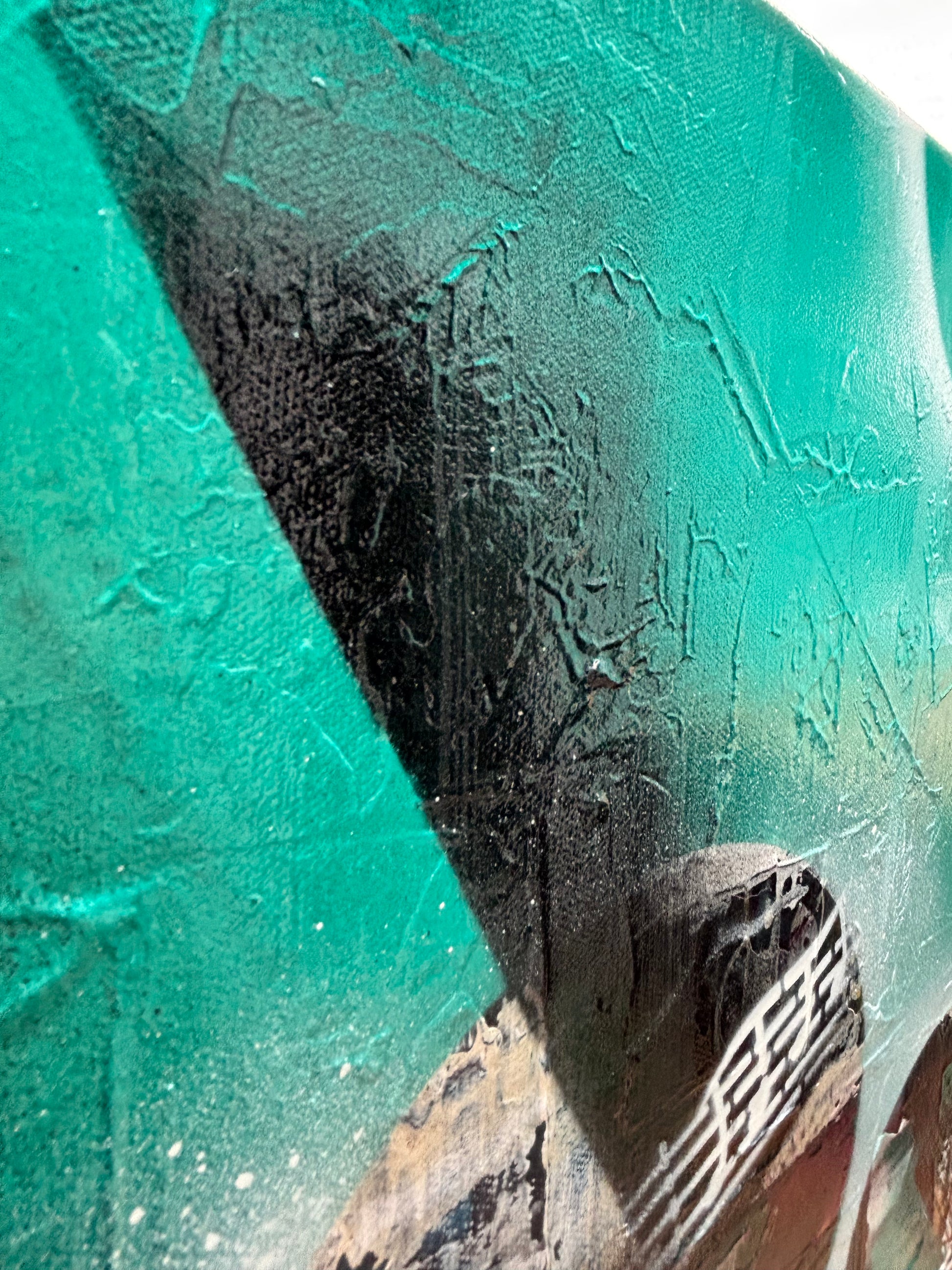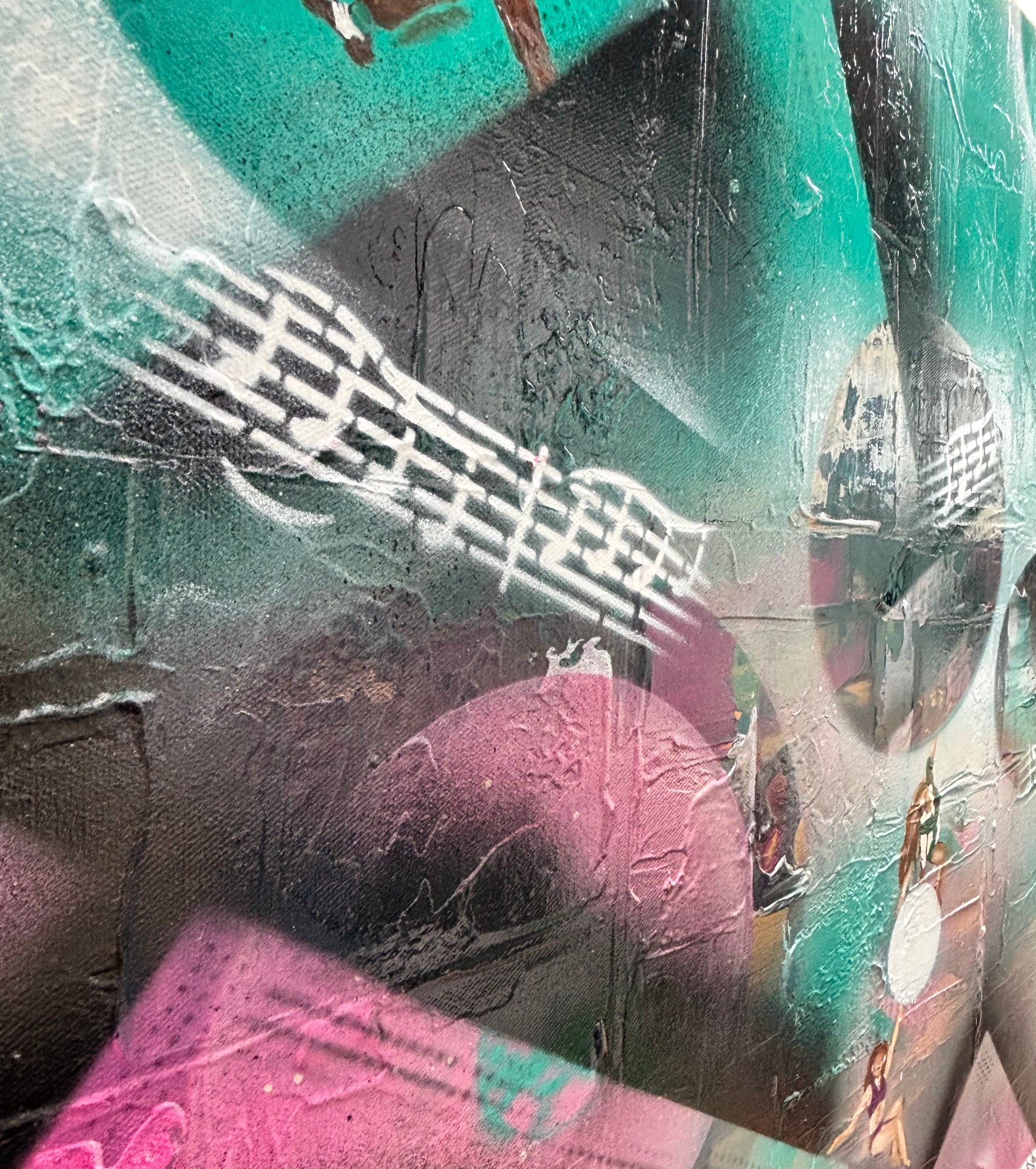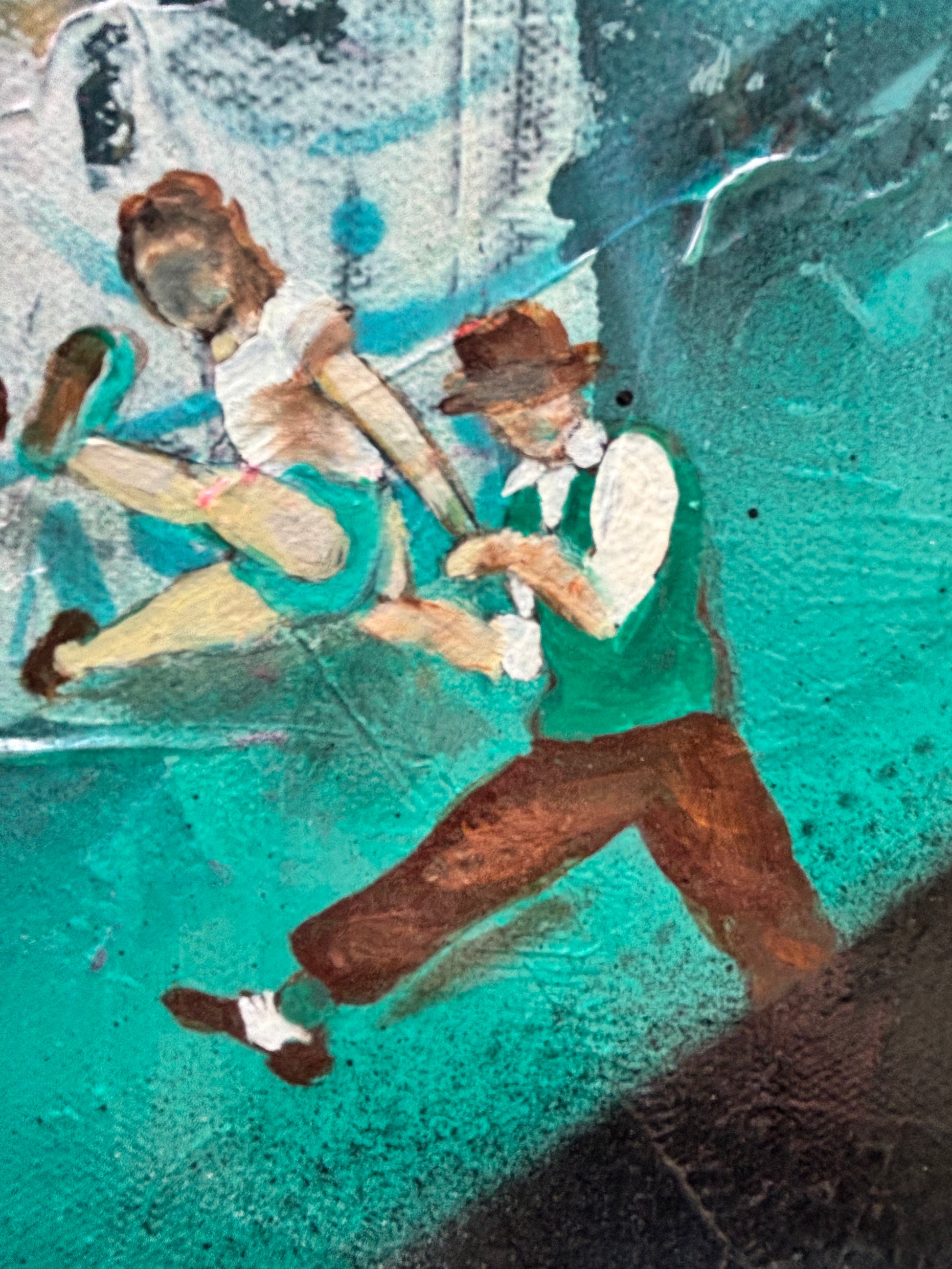 Das Werk „Unknown Faces“ verbindet abstrakte Ausdruckskraft mit figürlicher Bewegung. Auf einem lebendigen, vielschichtigen Hintergrund aus Acrylfarben und Acrylspray entfaltet sich eine dynamische Szene aus tanzenden Körpern – kraftvoll, anmutig, in Bewegung. Die Figuren sind in Ölfarbe ausgearbeitet, was ihnen eine besondere Tiefe und Präsenz verleiht.