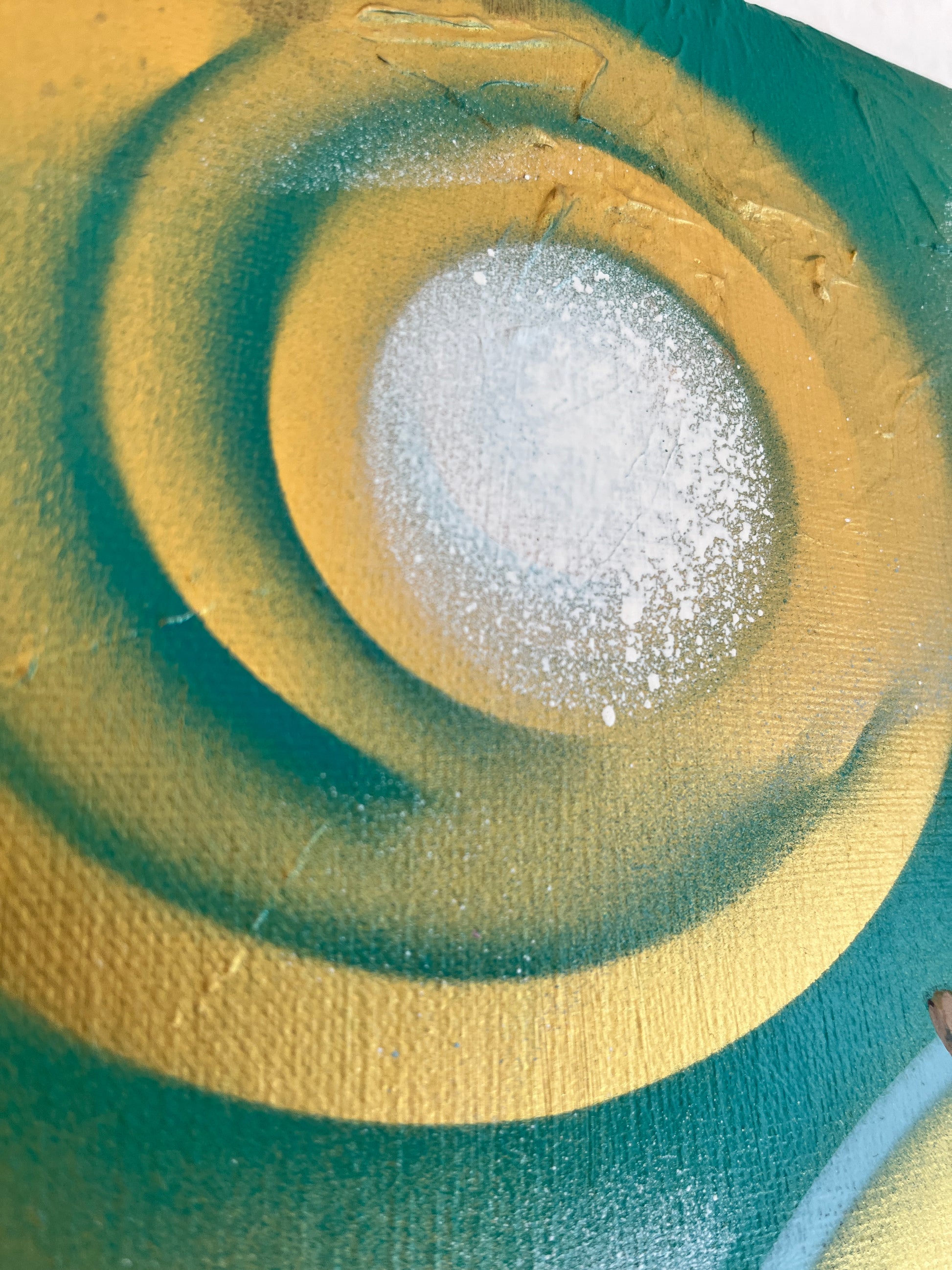 Acrylfarbe, Farbspray, Motiv in Ölfarbe